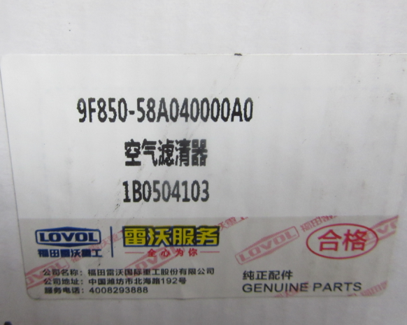 FOTON 空气滤清器 Part High-quality FOTON spare part, applicable to 9F20-585000 series machinery. OEM Code: 9F850-58A040000A0 Original source: https://www.linyiwooyeah.com