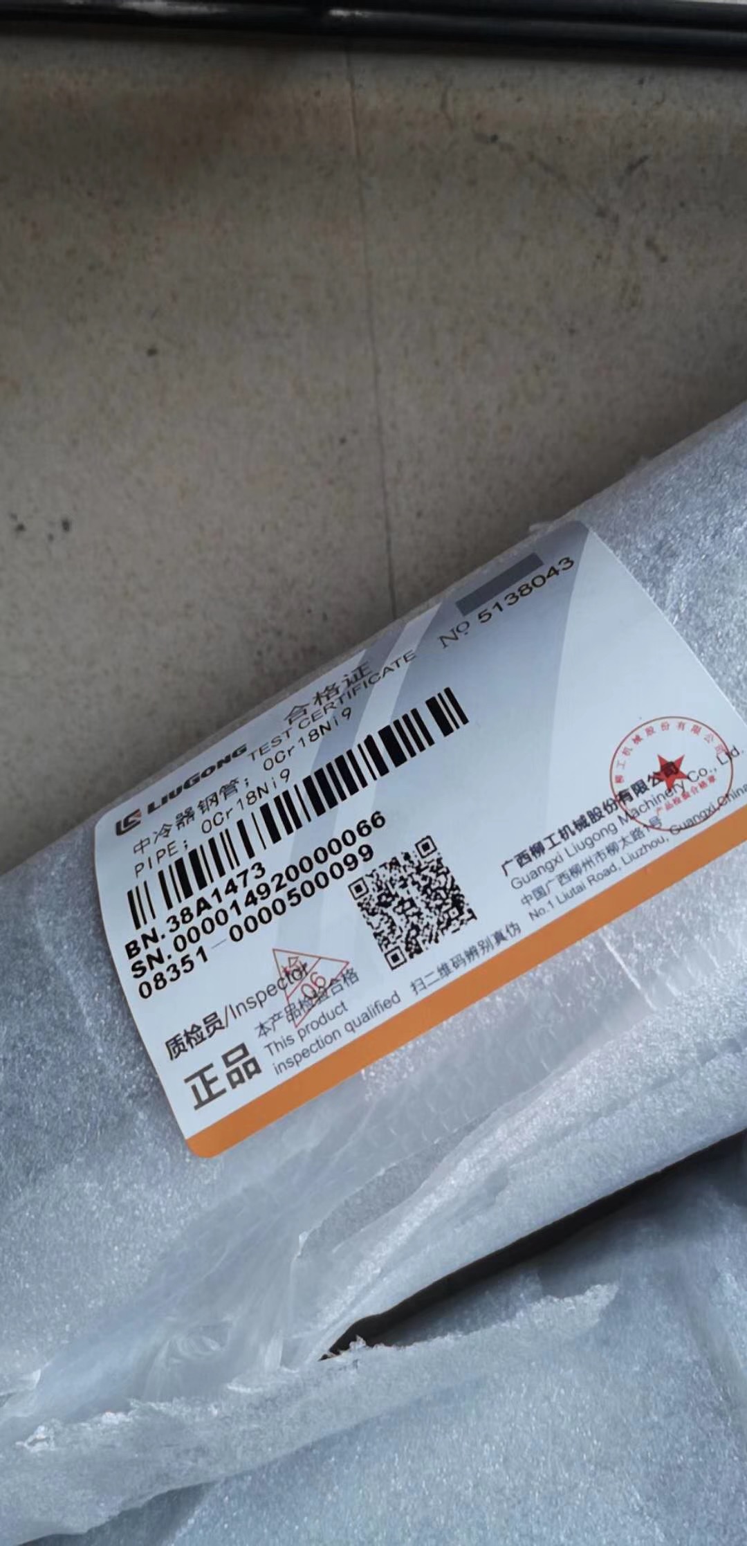LIUGONG 中冷器钢管;0Cr18Ni9 Part